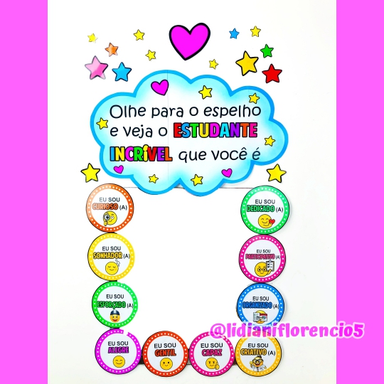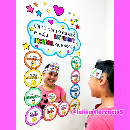No Dia do Estudante, transforme sua sala em um espaço de encantamento e descoberta com o Espelho das Afirmações! ✨ Imagine cada criança se olhando e lendo: “Eu sou capaz!” “Eu sou inteligente!” “Eu sou importante!” Parece simples, né? Mas é MÁGICO! Essa atividade vai MUITO além do reflexo: ela toca o coração, fortalece a autoestima e planta sementinhas de confiança que crescem pra vida toda! Ideal para professoras que acreditam na potência de cada criança e querem celebrar o Dia do Estudante com sentido, emoção e propósito! Porque quando uma criança se vê como capaz… ela pode conquistar o mundo!