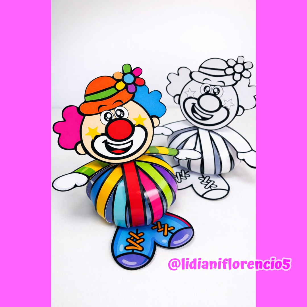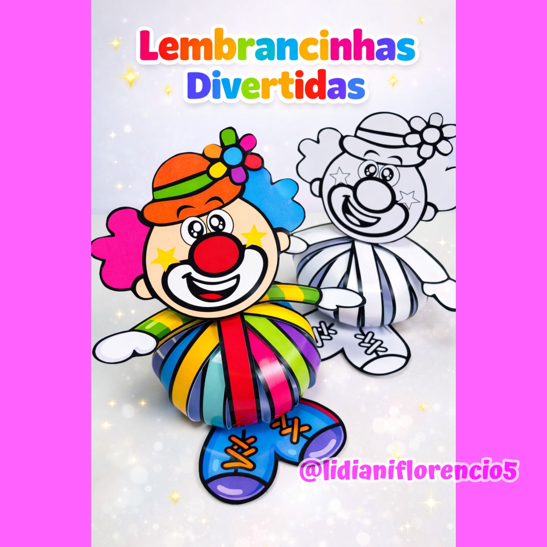 O arquivo digital LEMBRANCINHA PALHAÇO CIRCO é prontinho para imprimir, recortar e montar, formando um palhacinho com efeito 3D que encanta as crianças na hora! 😍