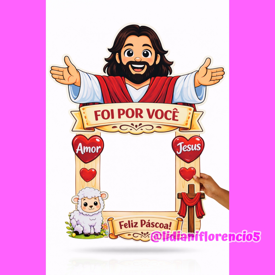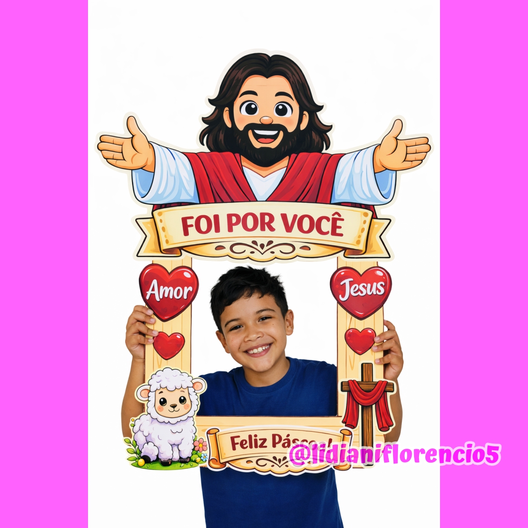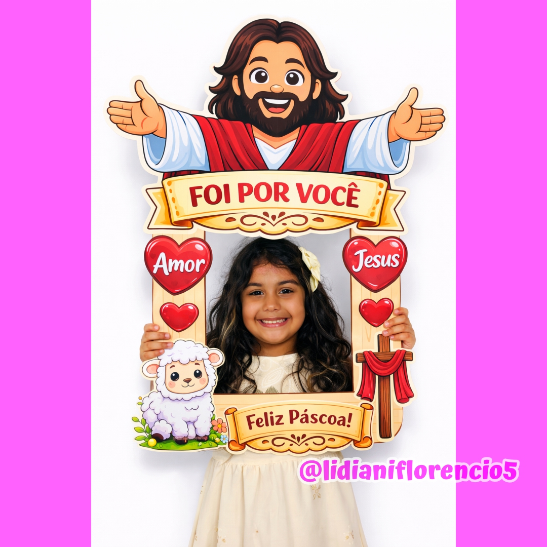 A Moldura Grande Páscoa Cristã é perfeita para fotos especiais, trabalhando com as crianças a verdadeira mensagem da Páscoa: amor, entrega e esperança. ✨