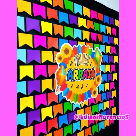O Painel Arraiá Bandeirinhas é super criativo, fácil de montar e lindo.