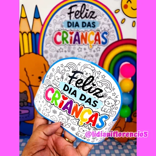 Arquivo digital pronto para imprimir com arco-íris, lápis gigantes e personagens estilo Bobbie Goods — perfeito para decorar, brincar e fazer fotos inesquecíveis no Dia das Crianças.