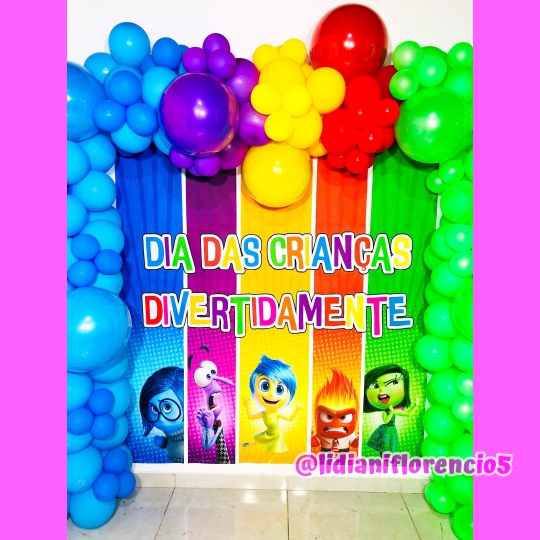 Transforme sua comemoração do Dia das Crianças em um evento mágico e cheio de cores com este painel inspirado em Divertidamente!