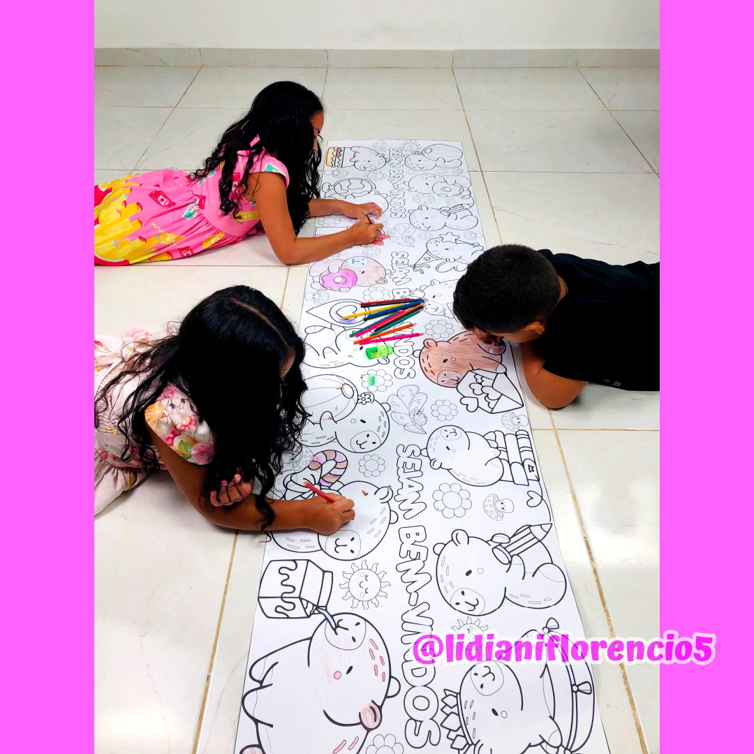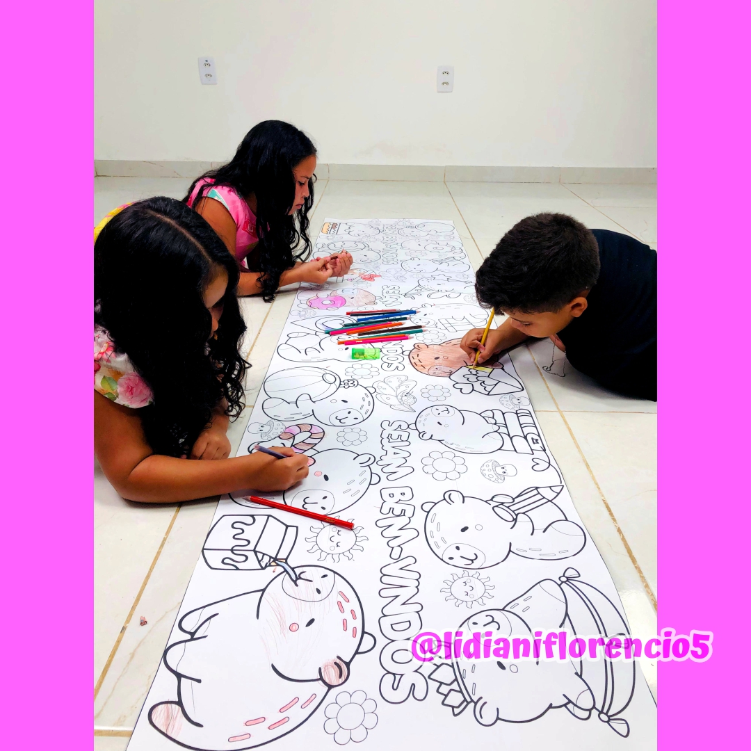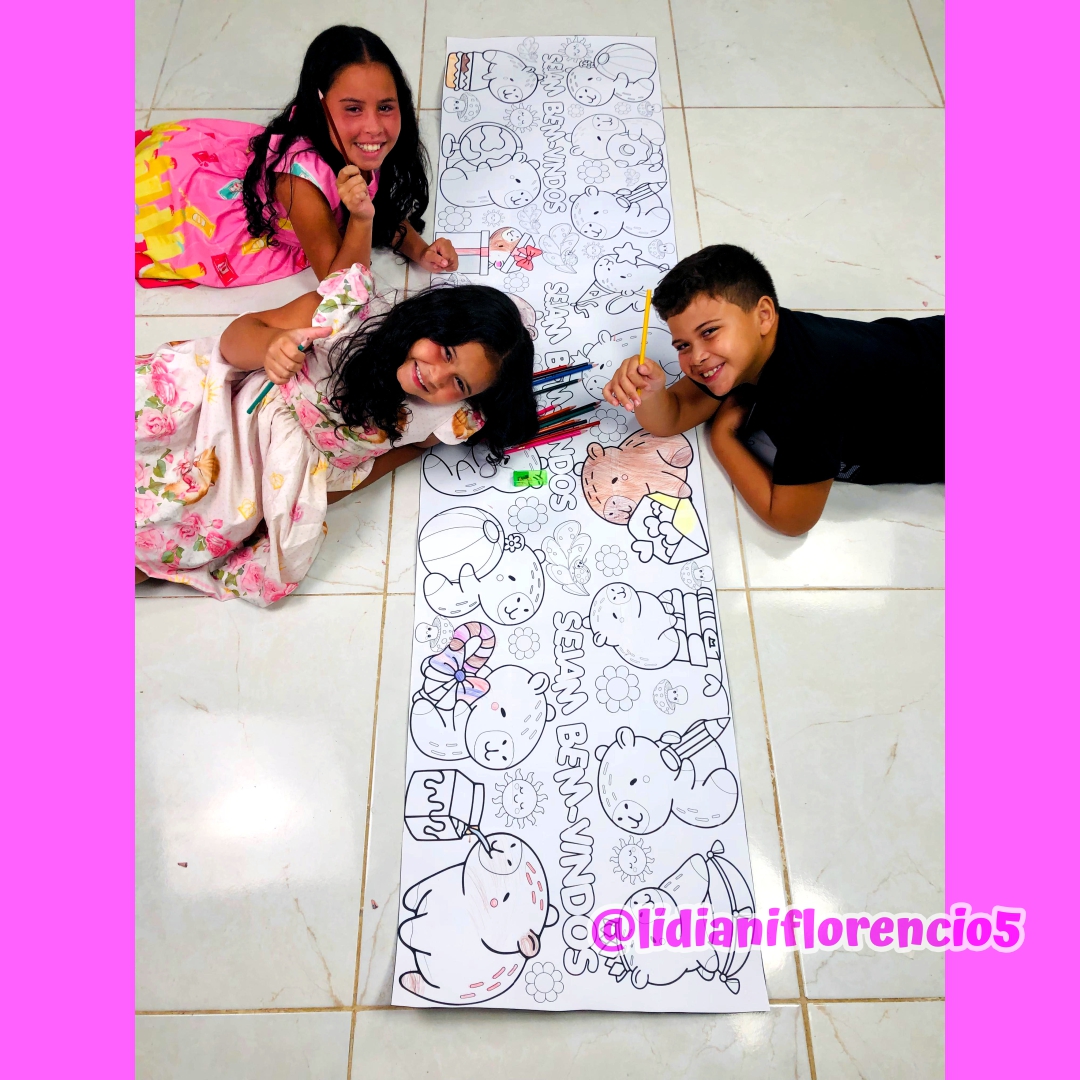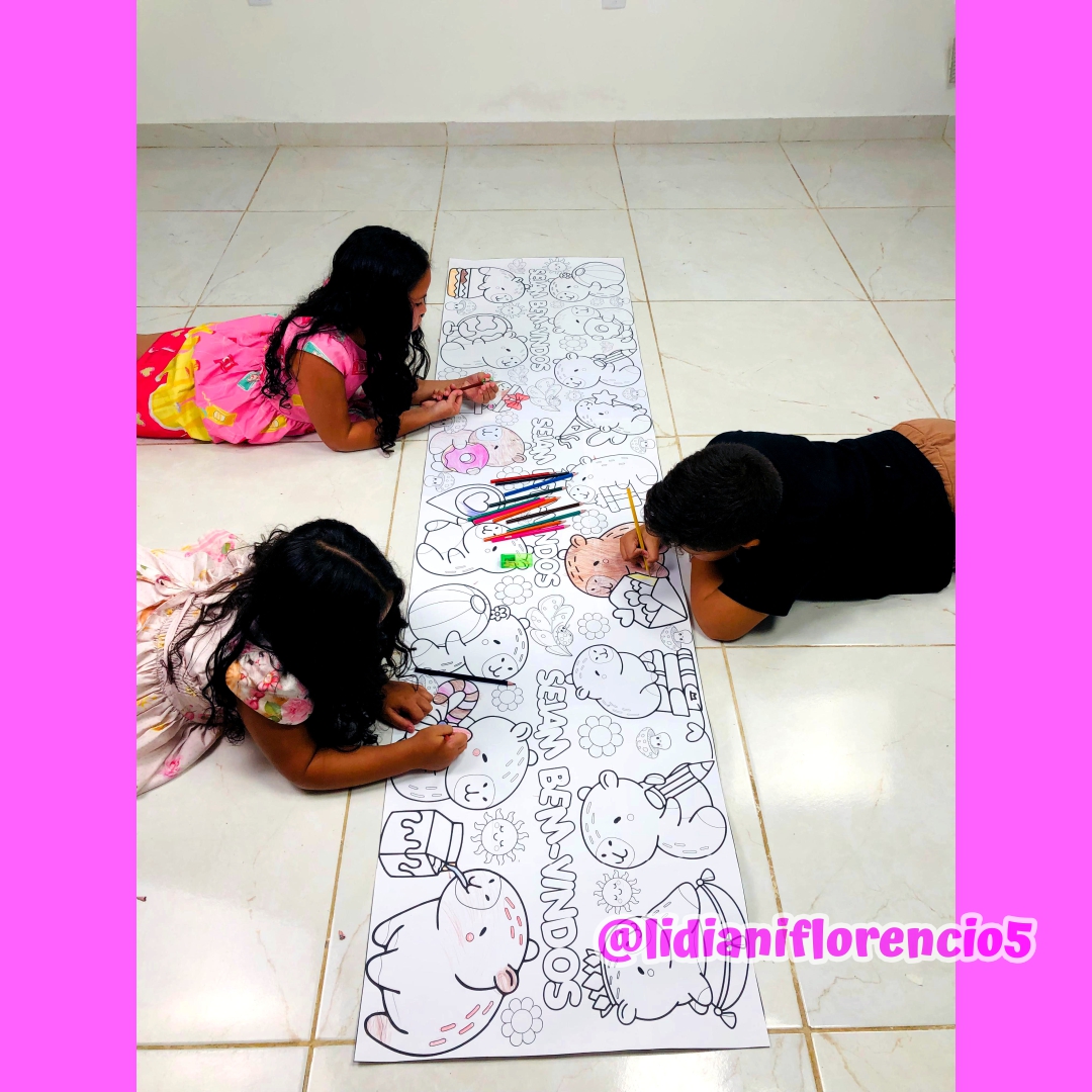 Comece o ano acolhendo a turma com arte colaborativa! Um tapete gigante para colorir, perfeito para o primeiro dia e para fotos lindas de recordação.